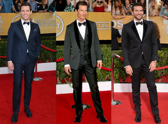 بالاضافة الى الفساتين المبهرة اللتي زينت السجادة الحمراء مساء أمس في حفل SAG فان العديد من الرجال نجحوا في سرقة الاضواء من السيدات الساحرات ومن بينهم الممثل برادلي كوبر اللذي تالق ببدلة من مجموعة Gucci والممثل ماثيو ماكوناهي بطل Dallas Buyers Club والنجم مات دايمان اللذان اختارا بدلتان في قمة الأناقة من مجموعة Dolce & Gabanna بالاضافة الى نجم 30Rock جامس مارسدن اللذي تألق ببدلة من مجموعة Valentino